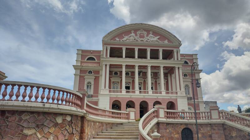 Le Théâtre Amazonas est le monument le plus symbolique et le plus grand de l'apogée économique de Manaus. Inauguré en 1896, il dispose de sept cents places. Il a été construit avec des briques apportées d'Europe, des verres français, du marbre italien et des tuiles d'Alsace. Les plus importantes compagnies d'opéra, de théâtre et d'orchestres symphoniques se sont produites dans ce théâtre. Fortement inspiré de l’Opéra Garnier à Paris. Sa coupole avec le drapeau Bresilien à été offerte par la France et l’Allemagne. Elle est composée de 36 000 plaques de céramique. Le plafond de la salle de spectacle représente les pieds de la Tour Eiffel.