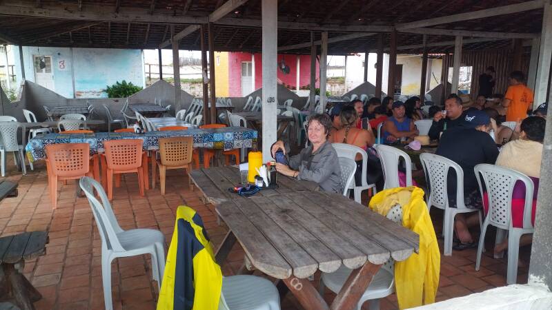 A midi pause déjeuner au bord d’une lagune, oû viennent se baigner les habitants du village de Tutoia.