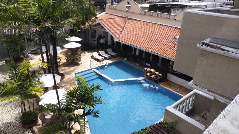 11h30 notre chauffeur passe nous prendre à l’hotel, direction Fortaleza. Nous quittons avec regret ce village tranquille et agréable. 1h de route des sables et 4 h de route goudronnée. Marie France a pu avoir une place à l’avant pour éviter le mal des transports. Nous faisons 30mn de pause pour se restaurer. Nous traversons des quartiers très pauvres avant d’arriver à notre Hotel le Villa Mayor, il fait parti de notre tour Brasil Planet. Hotel 4 étoiles, bon petit déjeuner, chambre un peu petite, pas de shampoing et sèche cheveux.