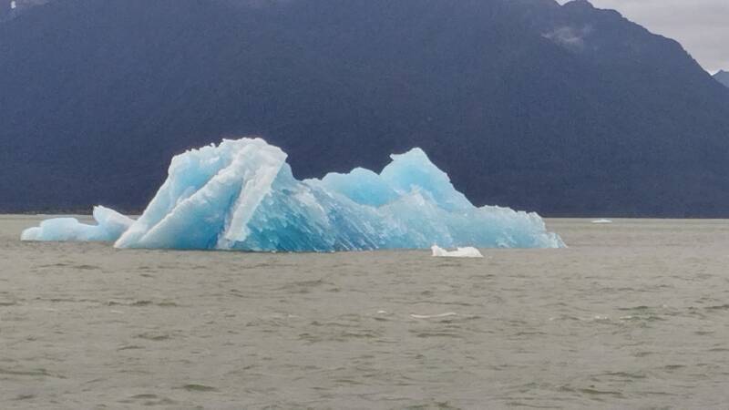 A mis parcours environ une des deux entraves cassent, envoyant de grosses vagues d’eau à l'avant, plusieurs personnes mouillées de la tête aux pieds sur la plateforme, je l’ai échappé belle, je venais juste de rentrer après quelques photos. Le skipper doit diminuer sa vitesse de 50%, pour garder le contrôle du bateau. Les courants sont très forts sur cette lagune qui subit les marées du pacifique et de forts vents. Nous naviguons entre les blocs de glaces et un spectacle magnifique s’offre à nous, un glacier géant de 100m de haut, et d’une profondeur de 200m. L’eau est à 3 degrés toute l’année et peut attendre 500m de profondeur.