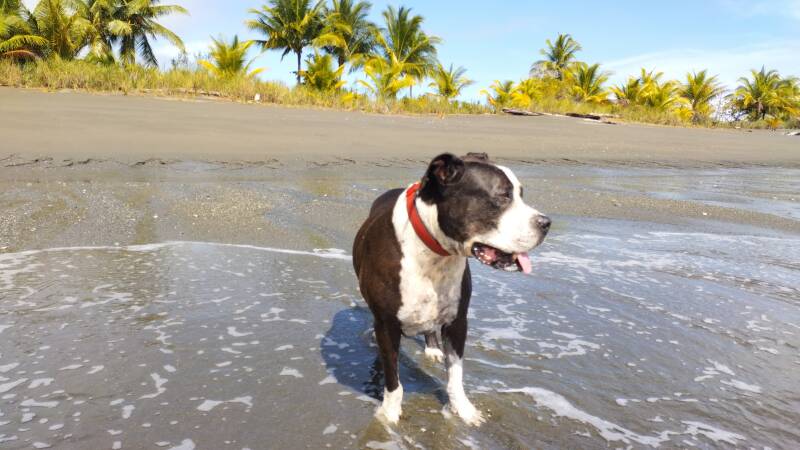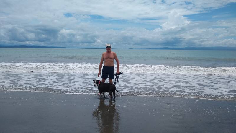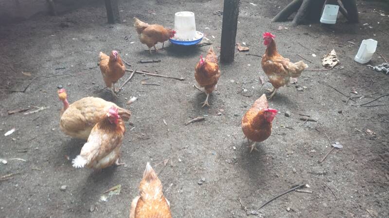 DAX l’américan staff, les poules et poussins. Dax chien facile à vivre, qui passe ses journées dans l’eau. 12 poussins et 8 poules, des oeufs frais tous les jours.