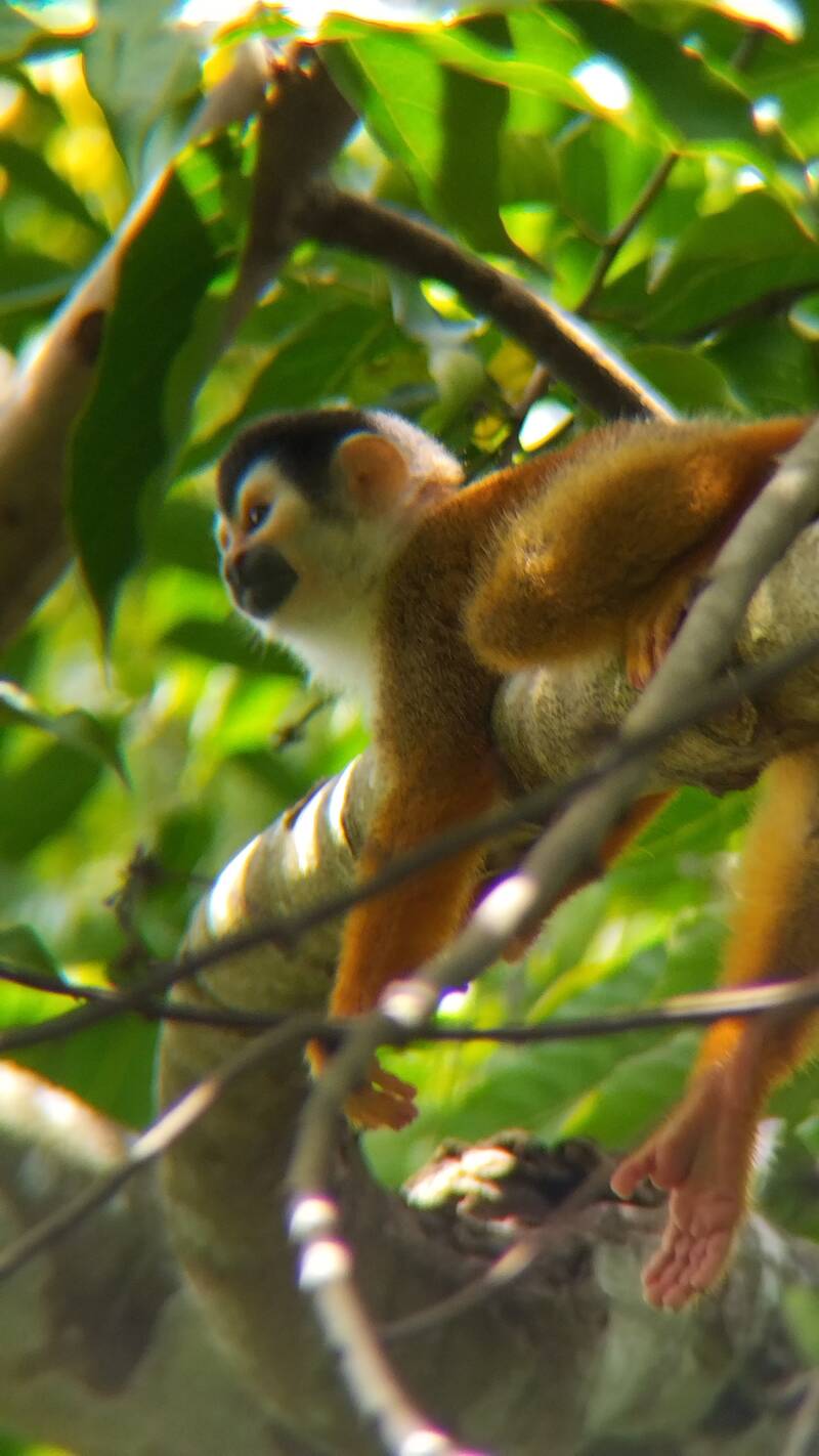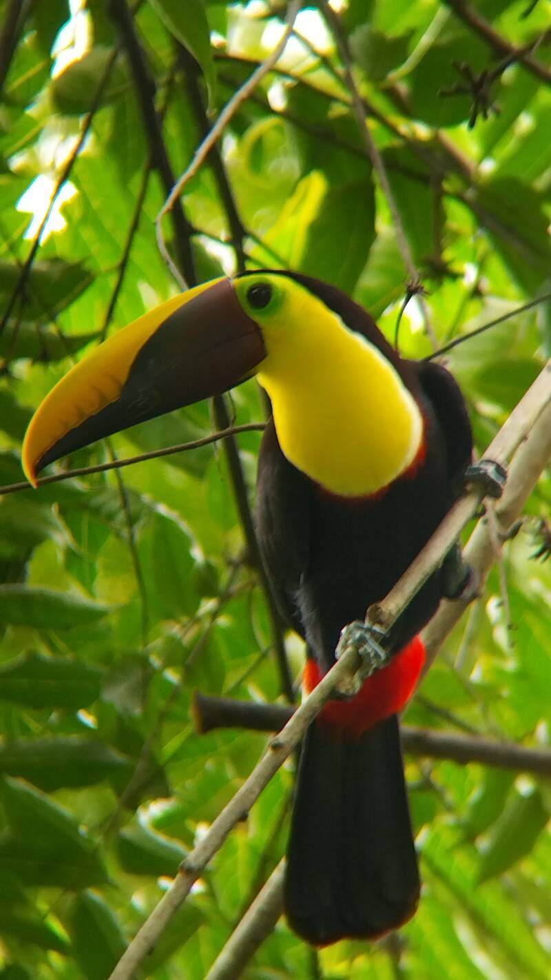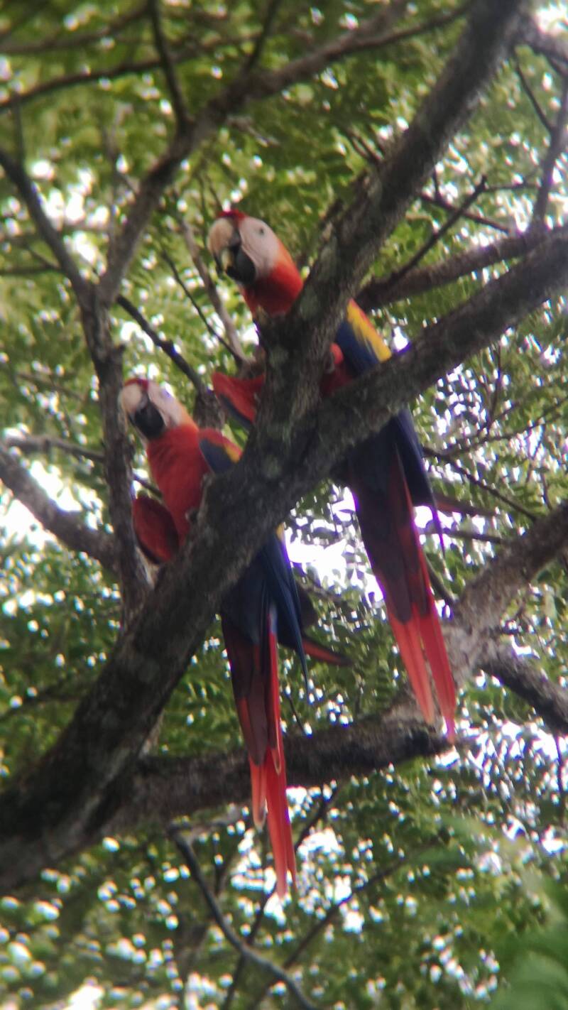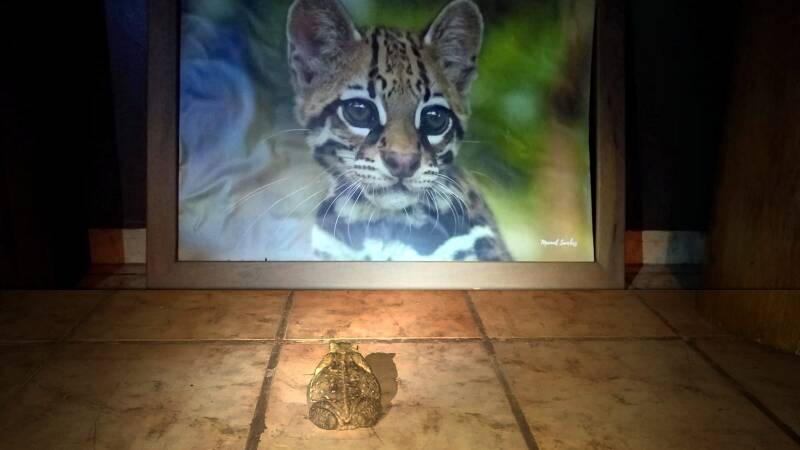 Les animaux sauvages autour de la maison, singes, aras, toucans, iguanes, koati, crapauds, grenouilles et geko