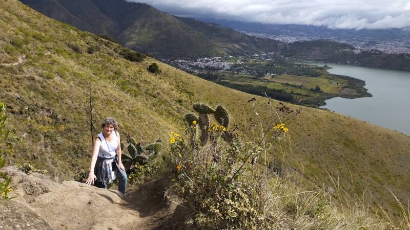 Randonnée sur les hauteurs de Yahuarcocha, nous voulions trouver un chemin pour se rendre sur les hauteurs de la lagune, avec l’application mapps.me que je vous conseille, nous sommes partis à l’aventure.