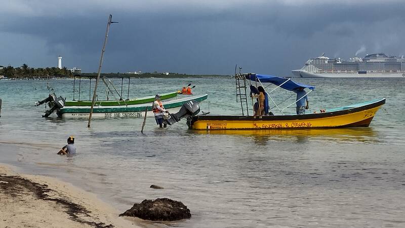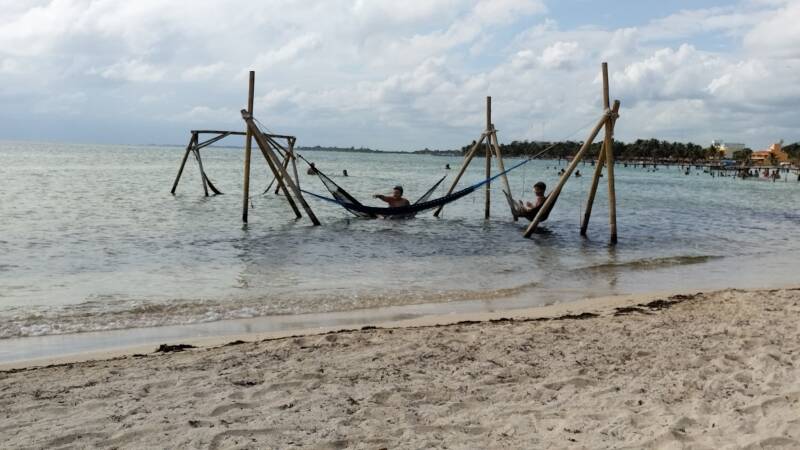 Mahahual, paradis des côtes caraïbes, où  se retrouvent les grands bateaux de croisières, avec une armada de taxis. De plus nous sommes arrivés le 24 novembre, fête de thanksgiving pour les américains. Beaucoup de monde, ambiance de fête. Tout est très chers dans les restaurants, des dizaines de masseuses, massent et remassent les croisieristes.