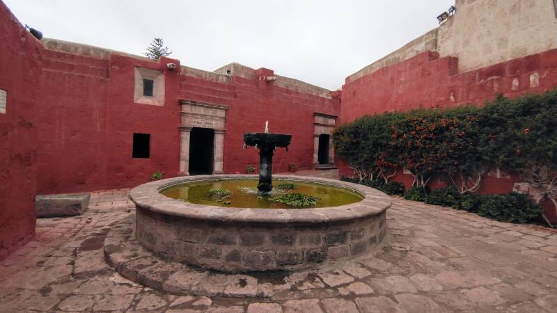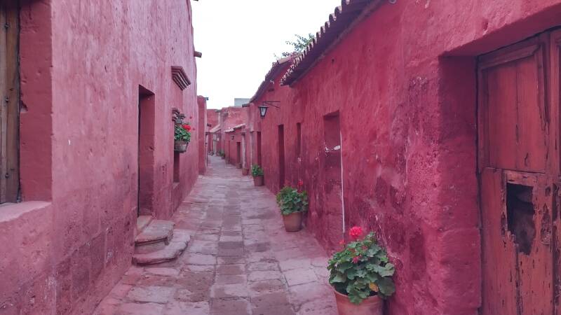 La rue de Cordova, toute de rouge peinte, part de ce cloître des orangers, bordées de cellules qui accueillaient une ou plusieurs religieuses ainsi que leurs servantes, d'austères à luxueuses selon les moyens de l'occupante. Ces cellules avaient une pièce principale, la chambre de la sœur, une petite cuisine, des chambres de servantes, parfois même un patio, selon la richesse de la propriétaire. Les lits étaient généralement sous une arche, afin de résister aux tremblements de terre. Les cellules portent en général le nom de leurs riches propriétaires. La rue Cordova se prolonge par la rue Toledo.