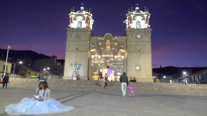 Ville de 300 000 habitants sur les bords du lac Titicaca. Centre historique agréable où nous avons assisté à la messe de Noël. Nous logeons dans un petit hôtel en ville, propre et calme pour 16 euros petit déjeuner inclus.