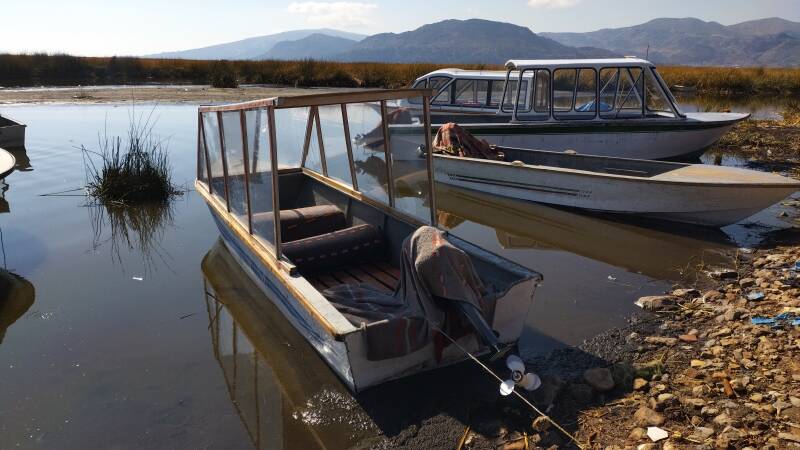 Richard notre guide Aymara nous emmène dans sa famille sur les iles flottantes d’Uros, 50 soles, 12 euros pour la matinée. Il passe nous prendre à 8h à notre hôtel, en taxi nous partons pour le port Aymara à 15mn de Puno. En tant que peuple indigène, ils n’ont pas le droit au port principal de Puno oû ils pourraient avoir plus de touristes.Ils recherchent leurs clients dans la rue. Le tourisme est malheureusement leur seul revenu. Au port nous prenons une petite embarcation.