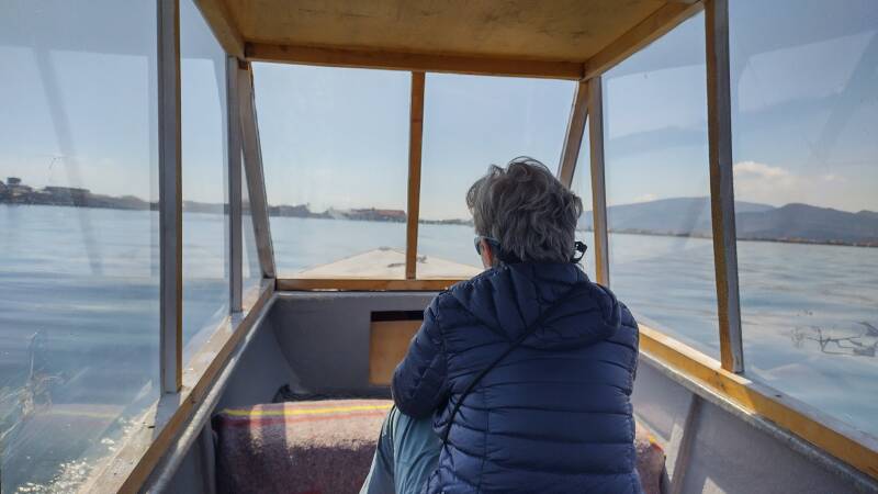 Le bateau collectivo nous emmène du port de Chiffon à Amantani en 1h et pour 10 soles par personne, 2euros50.