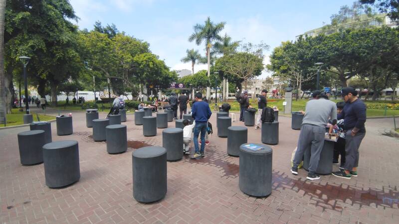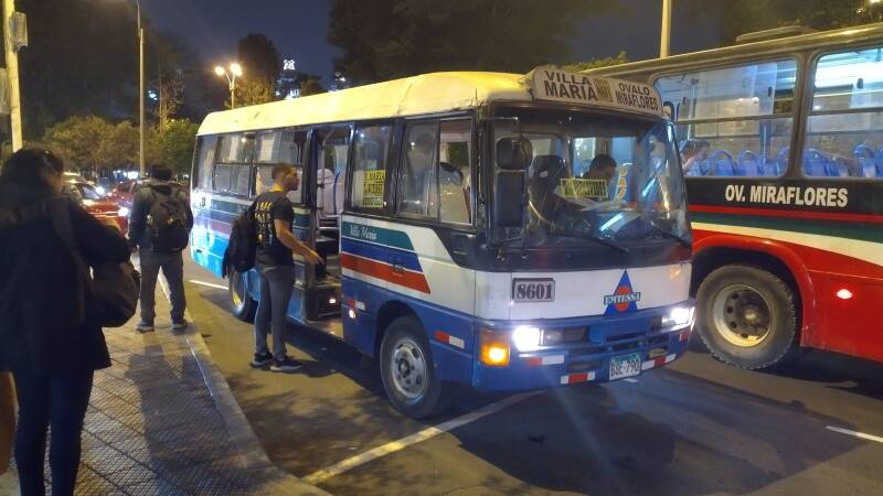 Première expérience, le bus, système d’arrêts incompréhensible pour un étranger, après trois demandes à des agents de sécurité, nous arrivons à notre arrêt. A Lima vous avez des milliers d’agents de sécurité, un par immeuble ou belle maison, des agents municipaux de nettoyage un peu partout, des agents de circulation pour les bus et passages piétons.